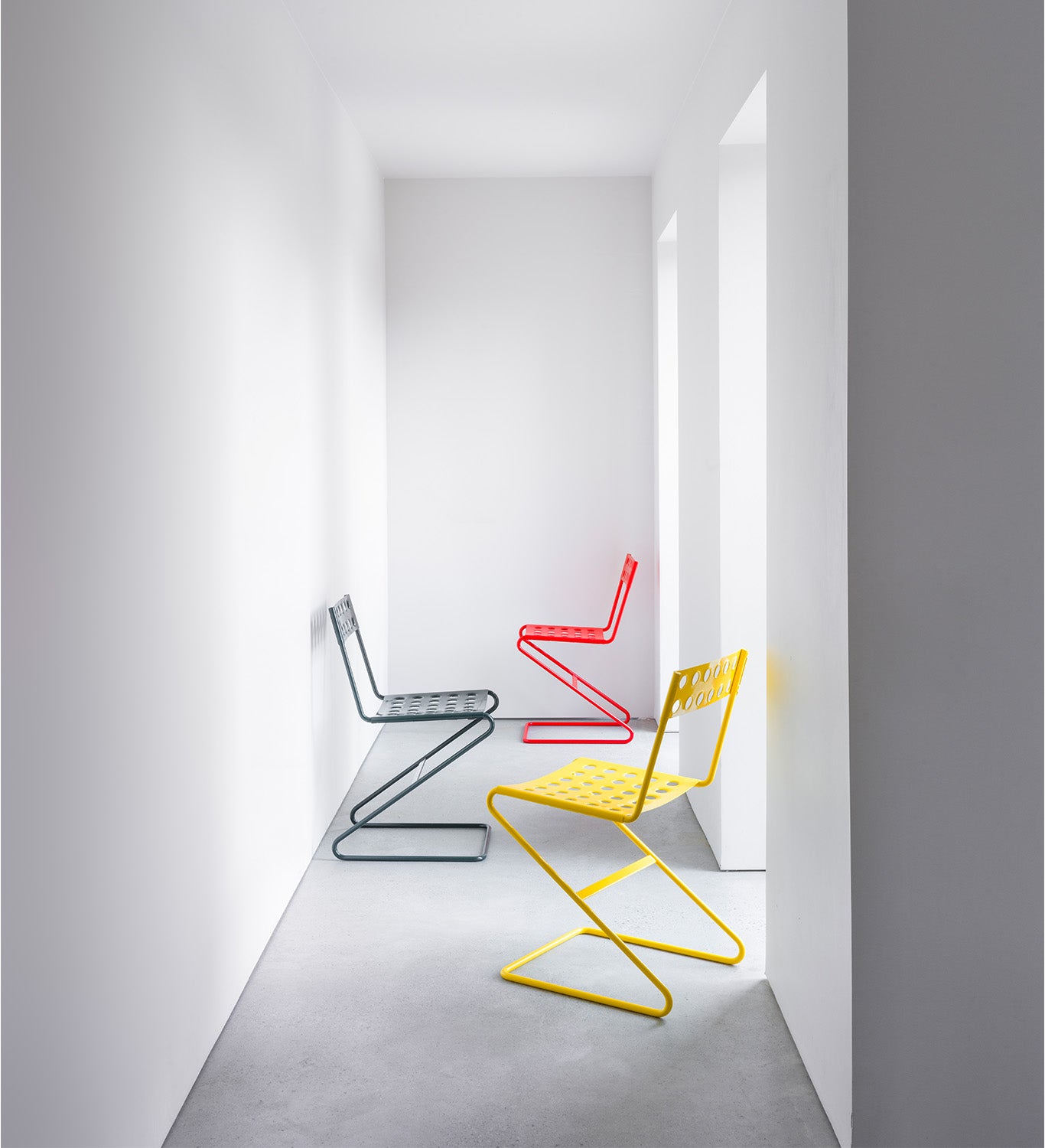 With the technique of bending a solid wire of spring steel into a durable and comfortable seating furniture, Zola has already established its own identity from the start. The collar-shaped perforations create a stable seat and backrest that easily guides away rainwater.