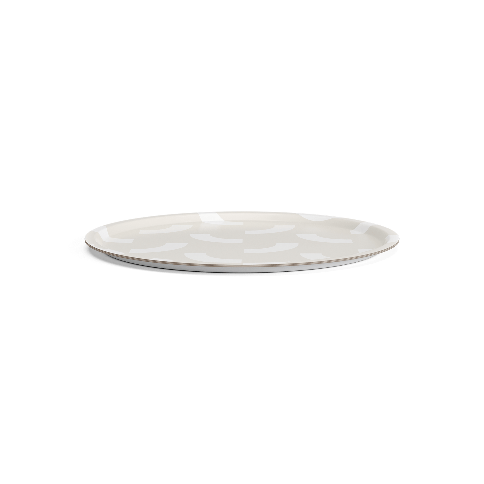 En bricka med ett grafiskt mönster inspirerat av betoningsmarkören i vår logotype. Brickan är gjord i formpressad FSC certifierad björkfanér med melaminbaserat ytskikt som tål att utsättas för väta och används med fördel inne eller ute.